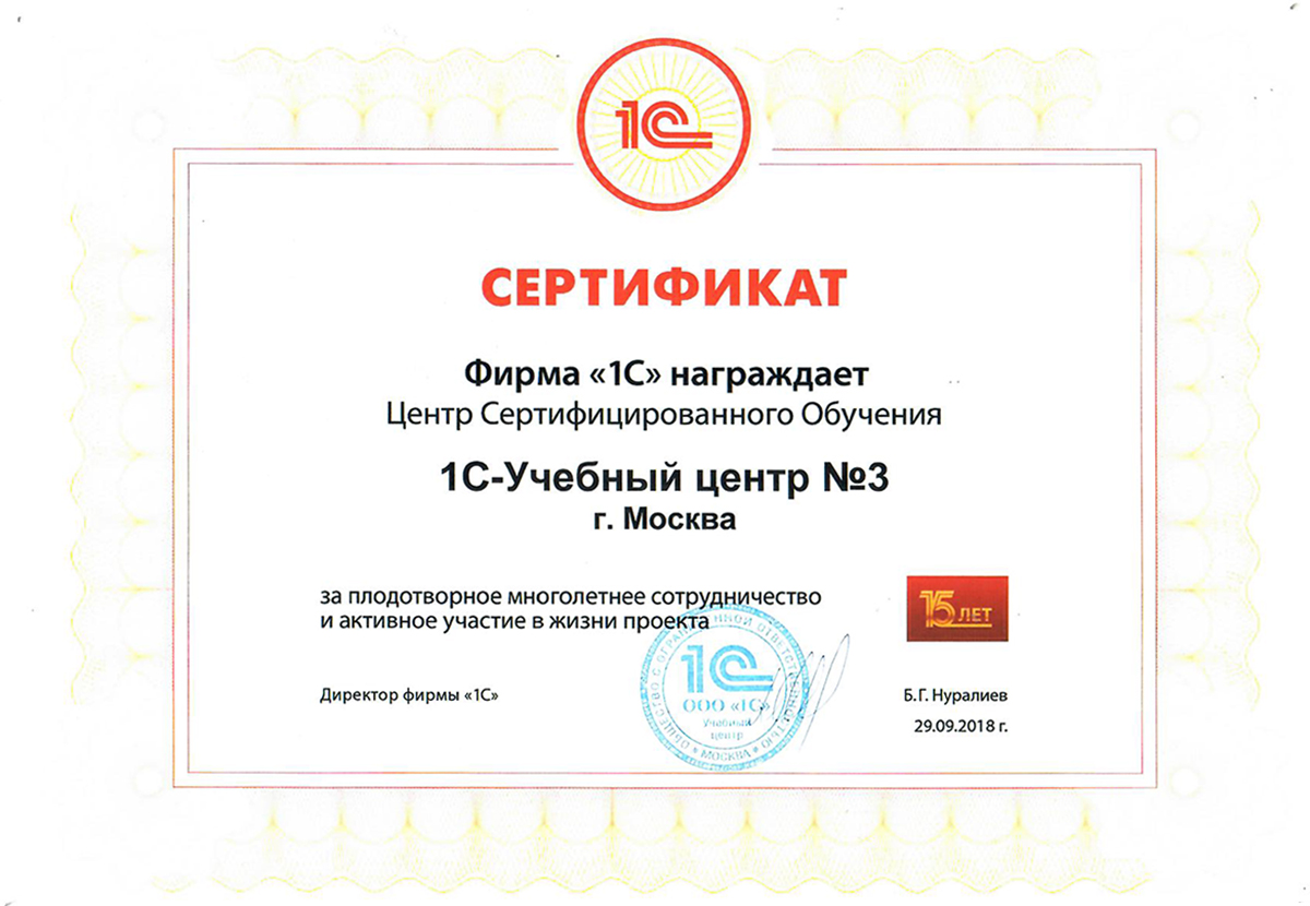 1С-Учебный центр №3 - совместный проект фирм «1C» и «Аналит». Учебный центр уже более 20 лет (с 2000г.) проводит курсы для программистов и пользователей по программным продуктам фирмы "1С". Наша основная задача - обеспечить качественное обучение слушателей, чтобы, пройдя курс, специалист мог работать самостоятельно и эффективно.