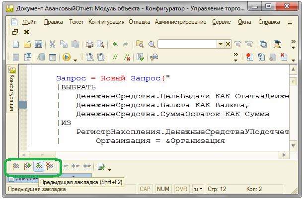 Уже многие поколения версий платформы «1С:Предприятие» поддерживают работу с закладками-метками в тексте модуля.