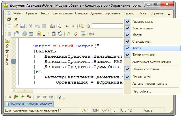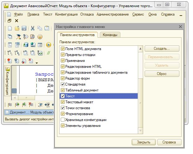 меню «Администрирование / Настройка»: