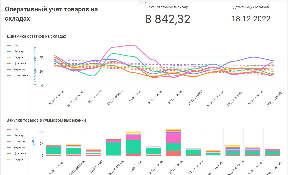 - Разные виды графического представления данных (таблицы, диаграммы, карты, индикаторы и др.)