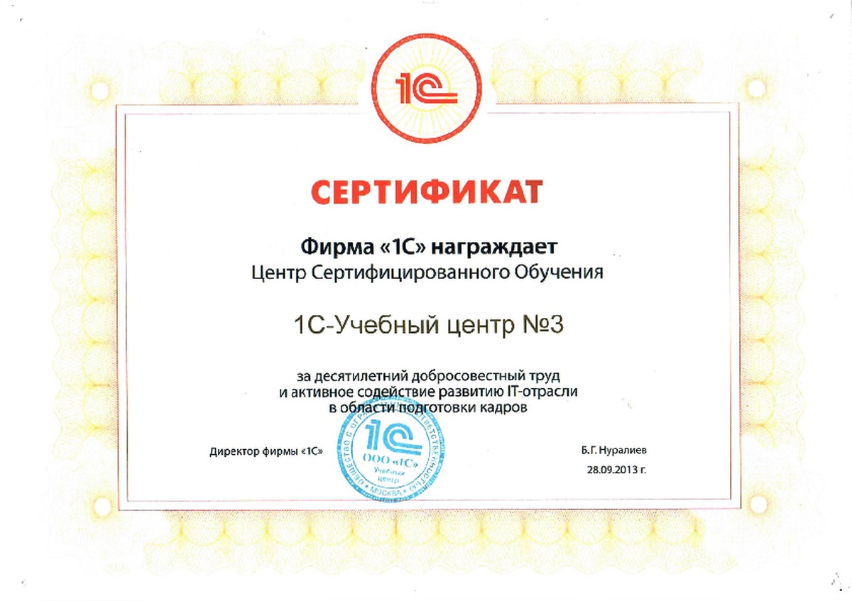 1С-Учебный центр №3 - совместный проект фирм «1C» и «Аналит». Учебный центр уже более 20 лет (с 2000г.) проводит курсы для программистов и пользователей по программным продуктам фирмы "1С". Наша основная задача - обеспечить качественное обучение слушателей, чтобы, пройдя курс, специалист мог работать самостоятельно и эффективно.