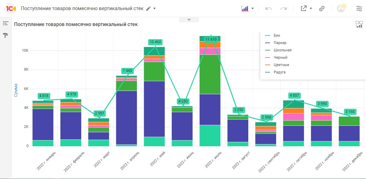 • Оплаты поставщикам - вертикальный стек к Оборотам по субконто